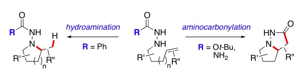 (11) “Hydrazides as Tunable Reagents for Alkene Hydroamination and Aminocarbonylation” Roveda, J. G.; Clavette, C.; Hunt, A. D.; Gorelsky, S. I.; Whipp, C. J.; Beauchemin, A. M. J. Am. Chem. Soc. 2009, 131, 8740-8741 [link]. (Highlighted in Synfacts)