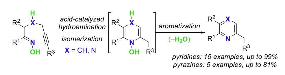 (12) “Synthesis of Pyridines and Pyrazines Using an Intramolecular Hydroamination-Based Sequence” Rizk, T.; Bilodeau, E. J.-F.; Beauchemin, A. M. Angew. Chem., Int. Ed. 2009, 48, 8325-8327 [link]. (Highlighted in Synfacts)