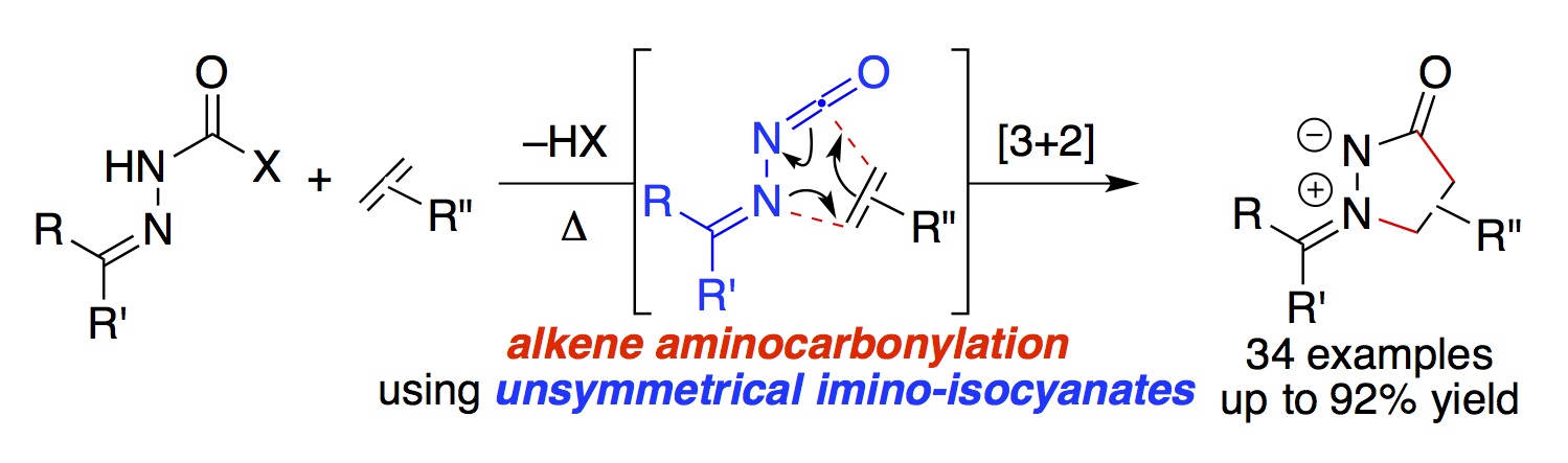 (46) “Synthesis of Cyclic Azomethine Imines by Cycloaddition Reactions of N-Isocyanates and N-Isothiocyanates” Bongers, A.; Ranasinghe, I.; Lemire, P.; Perozzo, A.; Vincent-Rocan, J.-F.; Beauchemin, A. M. Org. Lett. 2016, 18, 3778-3781 [link].