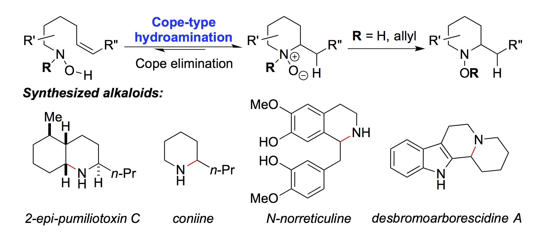 (75) Ly, H. M.; Almeneim, H.; Gill, M. A.; Keillor, J. W.; Beauchemin, A. M. Enabling Unfavouring Hydroaminations Using a Chemselective N-O Bond Reduction. Org. Lett. 2024, 26, 9885-9890. [link]