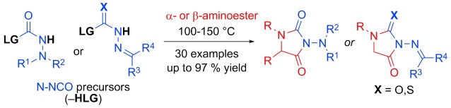 (39) “One-Pot Synthesis of Aza-Diketopiperazines Enabled by Controlled Reactivity of N‑Isocyanate Precursors” Ivanovich, R. A.;† Vincent-Rocan, J.-F.;† Elkaeed, E. B.; Beauchemin, A. M. Org. Lett. 2015, 17, 4898 – 4901 [link].