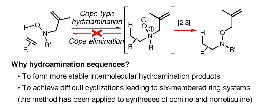 (8) “The Tandem Cope-Type Hydroamination / [2,3]-Rearrangement Sequence: A Strategy to Favour the Formation of Intermolecular Hydroamination Products and Enable Difficult Cyclizations” Bourgeois, J.; Dion, I.; Cebrowski, P. H.; Loiseau, F.; Bédard, A.-C.; Beauchemin, A. M. J. Am. Chem. Soc. 2009, 131, 874-875 [link].