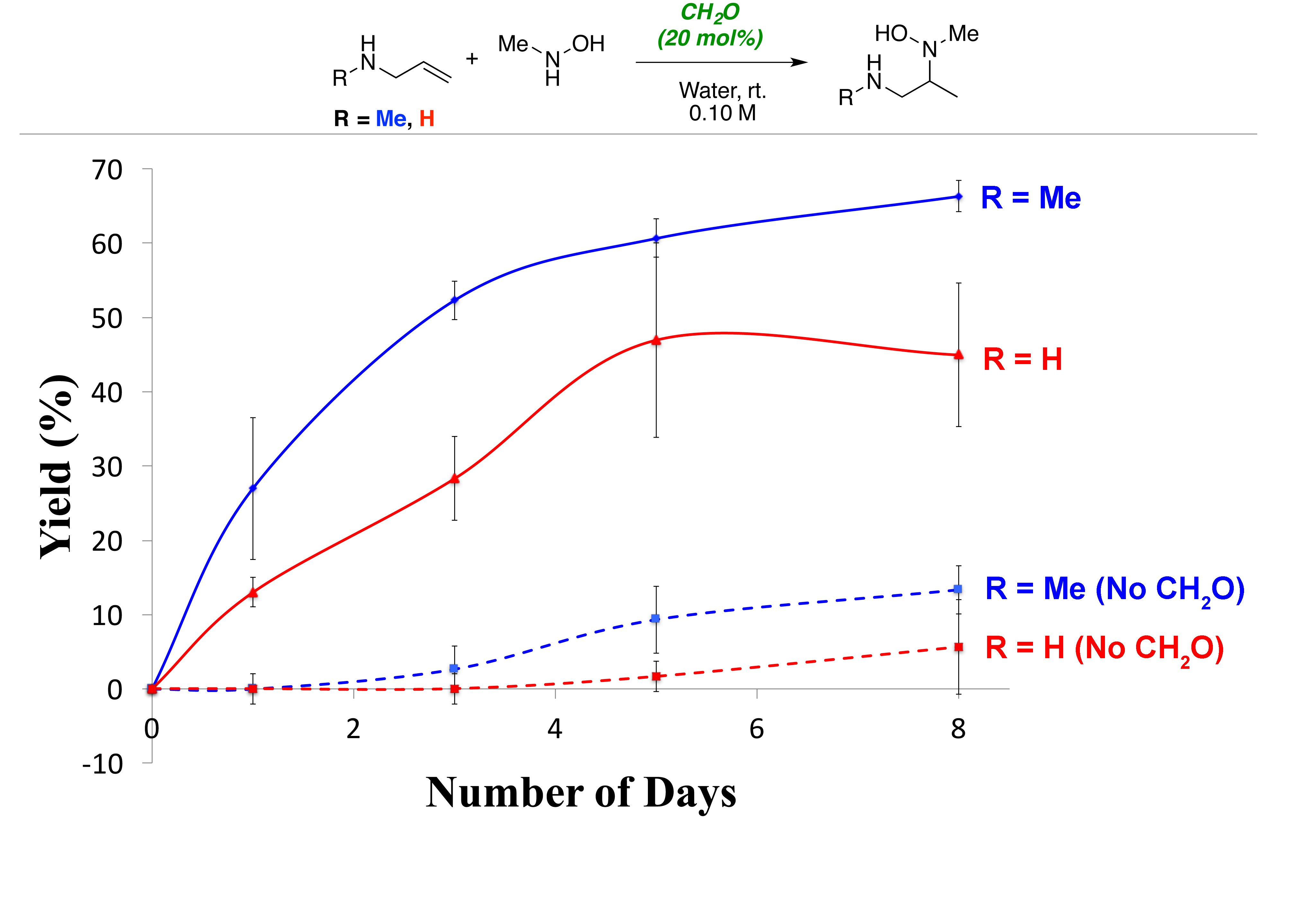 (51) “On the Ability of Formaldehyde to act as a Tethering Catalyst in Water” Jamshidi, M. P.; MacDonald, M. J.; Beauchemin, A. M. Orig. Life Evol. Biosph. 2017, 27, 405-412 [link].