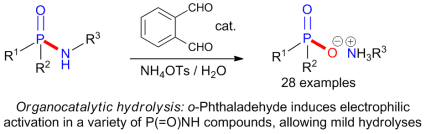 (52) “o-Phthalaldehyde Catalyzed Hydrolysis of Organophosphinic Amides and Other P(=O)–NH Containing Compounds” Li, B.-J.; Simard, R. D.; Beauchemin, A. M. Chem. Commun. 2017, 53, 8667 – 8670 [link]. (CSC100: Celebrating Canadian Chemistry)