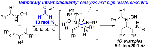 (40) “Formaldehyde as Tethering Organocatalyst: Highly Diastereoselective Hydroaminations of Allylic Amines” Hesp, C. R.; MacDonald, M.; Zahedi, M.; Bilodeau, D. A.; Zhao, S.-B.; Pesant, M.; Beauchemin, A. M. Org. Lett. 2015, 17, 5136 – 5139 [link].