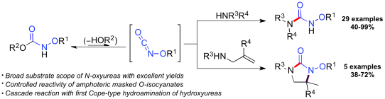 (68) Gagné-Monfette, W.; Vincent-Rocan, J. -F.; Lutes, O.; O’Keefe, G.; Jeanneret, A.; Blanger, C.; Ivanovich, R.; Beauchemin, A. M. Investigation of Masked N-Acyl-N-isocyanates: Support for Oxadiazolones as Blocked N-Isocyanate precursors. Chem. Eur. J. 2021, 27, 14051-14056 [link].