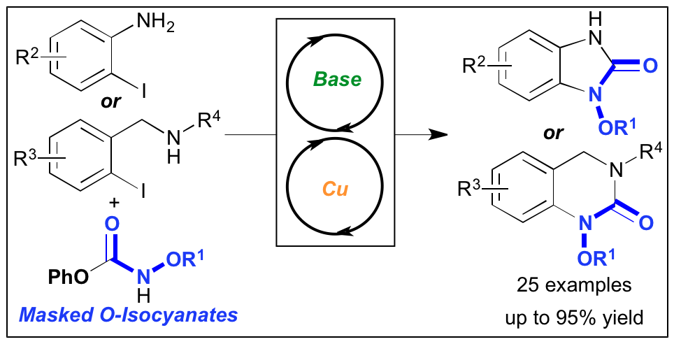 (56) “Catalytic substitution/cyclization sequences of O-substituted Isocyanates: synthesis of 1-alkoxybenzimidazolones and 1-alkoxy-3,4-dihydroquinazolin-2(1H)-ones” Wang, Q.; An, J.; Alper, H.; Xiao, W.-J.; Beauchemin, A. M. Chem. Commun. 2017, 53, 13055-13058 [link].