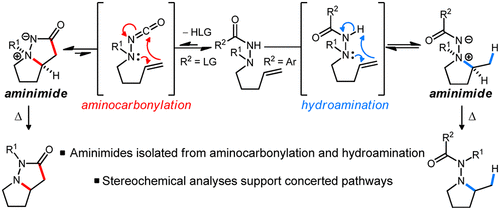 (59) “Aminimide Synthesis Using Concerted Amination Reactions of Alkenes: Scope and Mechanistic Information” Ivanovich, R. A.;† Quartus, J. Q.;† Das Neves, N.; Loiseau, F.; Raymond, M.; Beauchemin, A. M. J. Org. Chem. 2019, 84, 9792-9800 [link].