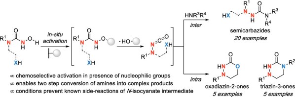 (28) “A Practical Approach to Semicarbazones and Hydrazones Derivatives via Imino-Isocyanates” Garland, K.; Gan, W.; Depatie-Sicard, C.; Beauchemin, A. M. Org. Lett. 2013, 15, 4074-4077 [link].